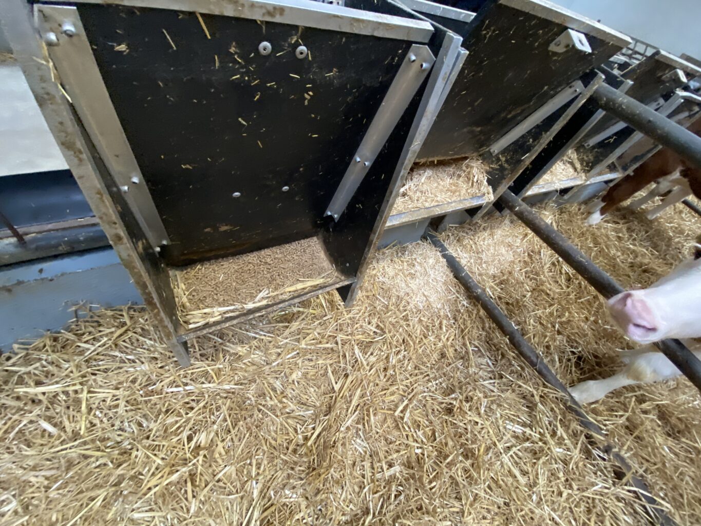 Jack: ‘Ik vind het belangrijk dat het goed loopt. Eenvoud in de bedrijfsvoering is hierbij belangrijk’. Dit betekent dat alle jonge kalveren in de eerste maanden naast kalvermelk gehamerd Spaans stro en kalverbrok krijgen. In totaal krijgen de kalveren 2 levensmaanden melk. De laatste 2 weken wordt de melkgift afgebouwd tot in de laatste dagen 1x daags 2 liter. Jack checkt of de kalveren voldoende brok opnemen voor de melkgift helemaal stopt. Na spenen wordt kalverbrok en gehamerd stro in droogvoerbakken verstrekt. Deze bakken houden het voer fris en biedt de kalveren de hele dag voer.